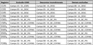 1. Não existe campo específico para quaisquer exclusões de base de cálculo (desconto incondicional, ICMS incidente na aquisição). O ajuste de exclusão deverá ser realizado diretamente no campo de base de cálculo.