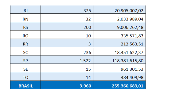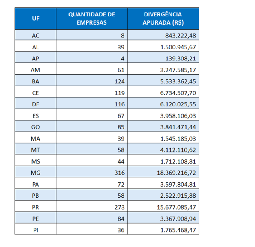 A tabela a seguir discrimina os quantitativos de contribuintes incidentes nesta edição, totalizados por Unidade da Federação: