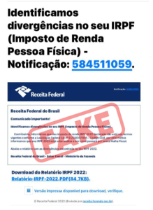 Os golpistas enviam um comunicado falso por e-mail, informando a ocorrência de divergências na declaração de IRPF, alegando que ela está sob análise e passará pela Malha Fiscal.