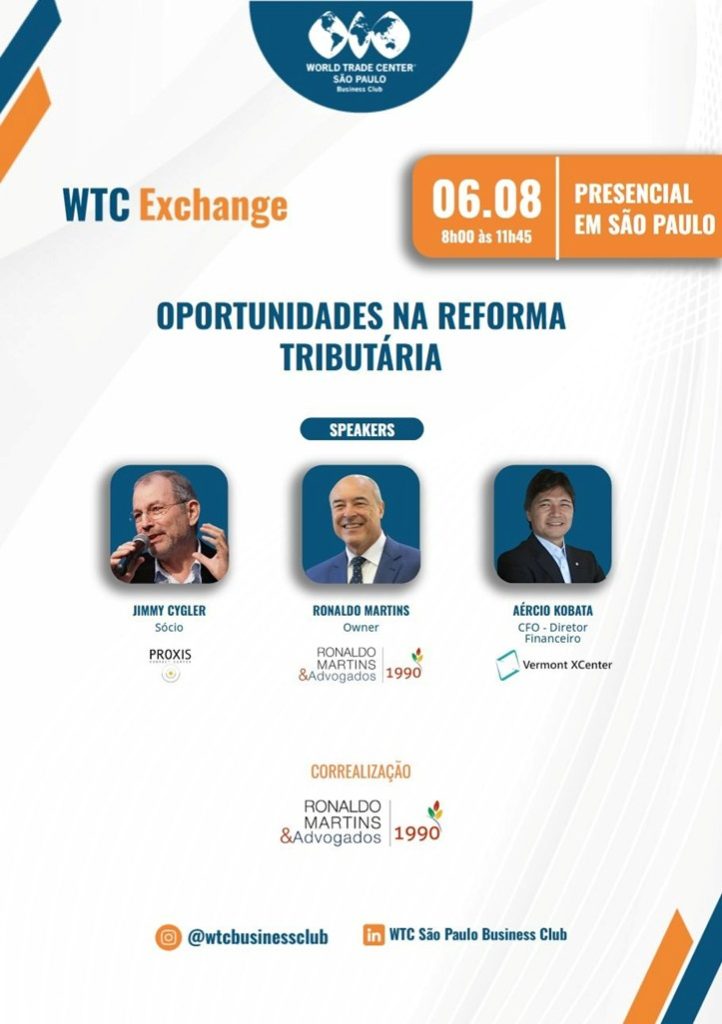 Executivos discutem os impactos da nova ordem fiscal no WTC Exchange, com foco em folha de pagamento, judicialização do direito de crédito e oportunidade no Split societário em função da terceirização No...